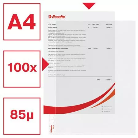 Genotherm, felül és a belső oldalon nyitott, lefűzhető, A4, 85 mikron, narancsos felület, ESSELTE