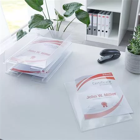 - erős, minőségi genotherm fontos dokumentumok tárolásához gyakori használatra - az erős fólia védi a dokumentumokat a sérülésektől - jól látható tartalom a víztiszta felületnek köszönhetően - felül és jobb oldalon nyitott - könnyű hozzáférés a dokumentumokhoz az előlapon található extra nagy kivágásnak köszönhetően - dokumentumok magasfokú védelme az erős, 150 mikron vastag alapanyagnak köszönhetően