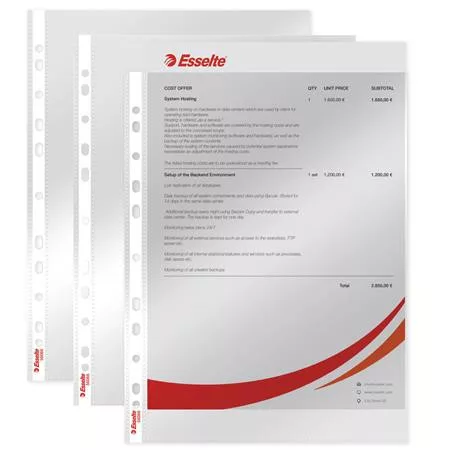 - minőségi tasak mindennapos használatra - az univerzális lyukasztású lefűzőcsíknak köszönhetően kényelmes tárolási megoldást biztosít dokumentumok számára bármilyen iratrendezőben, gyűrűskönyvben - felül nyitott, melynek köszönhetően a dokumentumok könnyen kiemelhetők a tasakból akár magában az iratrendezőben is - víztiszta, 55 mikron vastag, újrahasznosított PP alapanyag - a 11 lefűzőlyuknak köszönhetően bármilyen iratrendezőben, gyűrűskönyvben használható