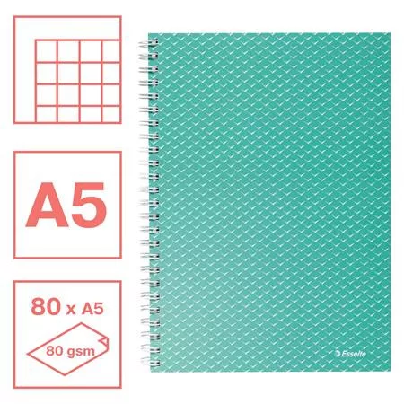 Spirálfüzet, A5, kockás, 80 lap, ESSELTE "Colour'Breeze", zöld