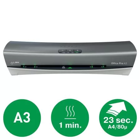 A Leitz iLAM Office Pro A3 laminálógép elegáns és kifinomult, a stílus és teljesítmény kiváló ötvözete. A lamináláshoz Leitz UDT laminálófóliák használata javasolt