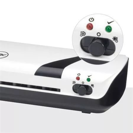 Ez a lamináló gép egyszerűen, egyetlen kapcsolóval működtethető, és 4 perc alatt bemelegszik.