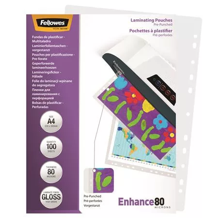 Meleglamináló fólia, lefűzhető, 80 mikron, A4, fényes, 100 db, FELLOWES