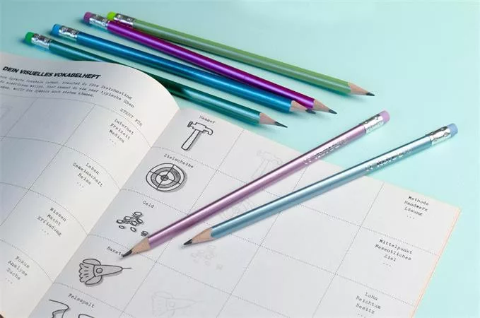 Grafitceruza radírral, HB, háromszögletű, KORES "GRAFITOS Style", vegyes metál színek