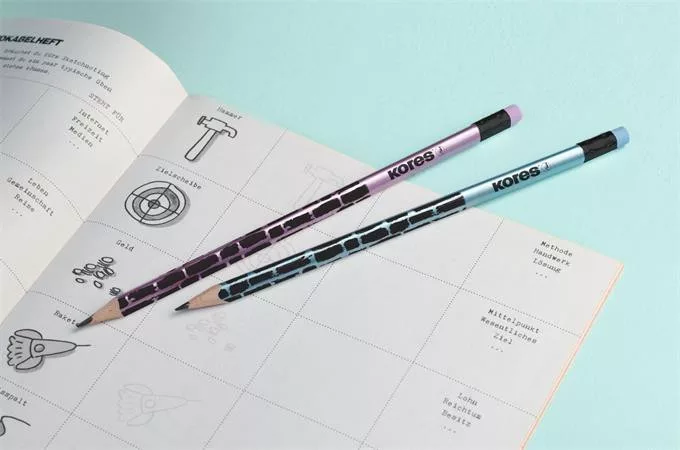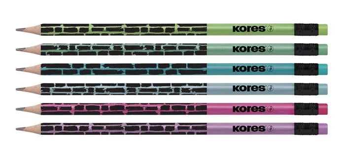 Grafitceruza radírral, HB, háromszögletű, KORES "Style Cracked", vegyes metál színek