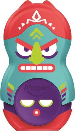 Hegyező és radír, egylyukú, tartályos, MAPED "Fancy", vegyes színek