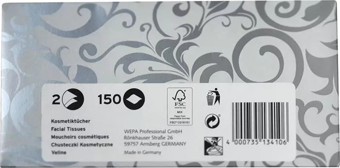 Kozmetikai kendő, 2 rétegű, 150 lapos, "Satino by Wepa"