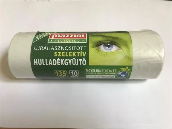 Szemeteszsák, szelektív hulladékhoz, újrahasznosított, erős, 135 l, 10 db, 70x110 cm, 25 µ, MAZZINI, átlátszó