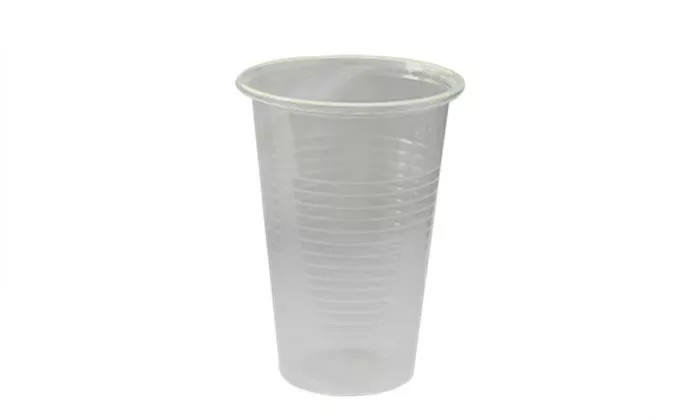 Egyszer használatos víztiszta műanyag pohár. Polipropilén anyagból készült.