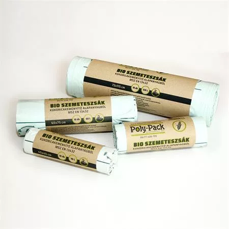 Környezetbarát, komposztálható, biológiai úton lebomló (PLA), megújuló forrásból származó, kukoricakeményítő alapú szemeteszsák.