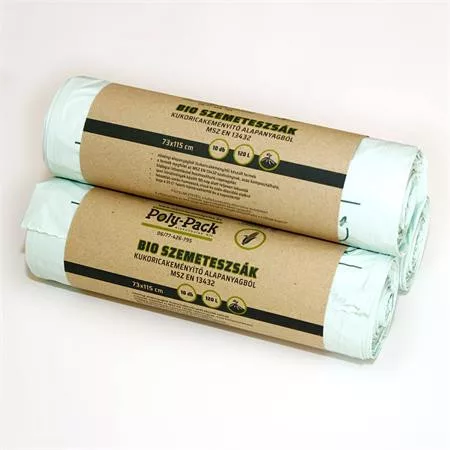 Környezetbarát, komposztálható, biológiai úton lebomló (PLA), megújuló forrásból származó, kukoricakeményítő alapú szemeteszsák.