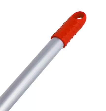 130 cm hosszú fehér-alukróm felmosónyél extra rozsdaálló réteggel, csavarodó akasztókupakkal.