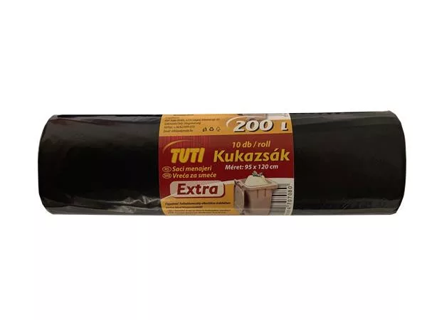 Szemeteszsák, extra erős, 200 l, 10 db, 95x120 cm, 32 µ, TUTI "Extra", fekete