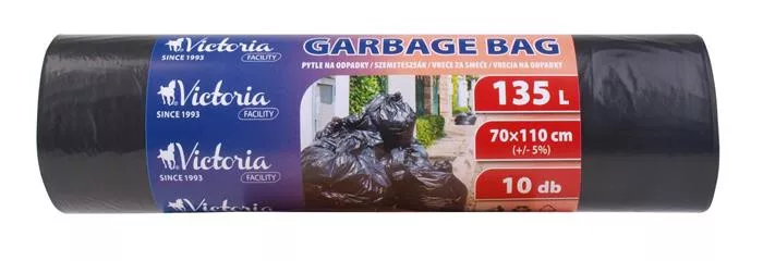 Szemeteszsák, 135 l, 10 db, 110x70 cm, VICTORIA FACILITY