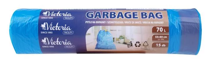 Szemeteszsák, zárószalagos, 70 l, 15 db, 55x80 cm, VICTORIA FACILITY