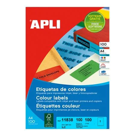 Etikett, 210x297 mm, színes, APLI, sárga, 100 etikett/csomag