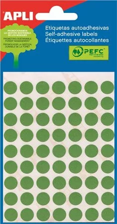Etikett, 10 mm kör, kézzel írható, színes, APLI, zöld, 315 etikett/csomag