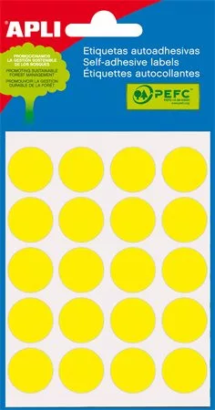 Etikett, 19 mm kör, kézzel írható, színes, APLI, sárga, 100 etikett/csomag