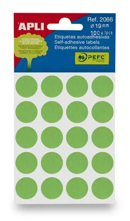 Etikett, 19 mm kör, kézzel írható, színes, APLI, zöld 100 etikett/csomag