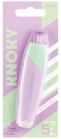 Hibajavító roller, 5 mm x 6 m, utántölthető, PENTEL "Knoky", világoszöld-lila
