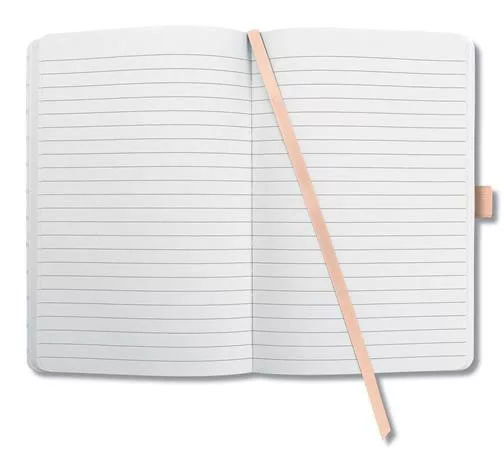 Gyönyörű jegyzetfüzet számos apró, praktikus részlettel.