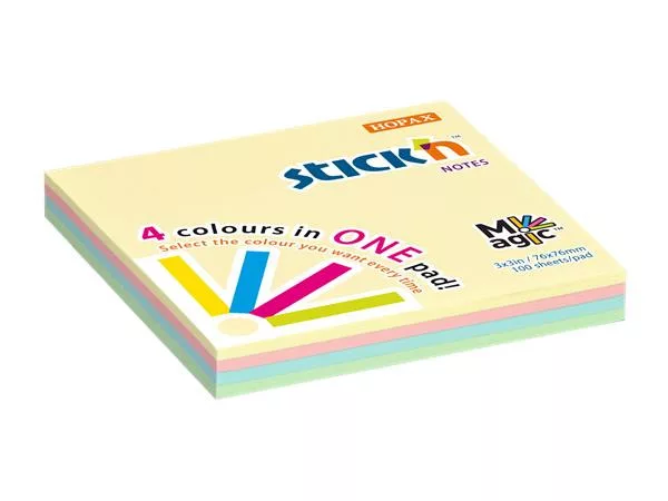 Öntapadó jegyzettömb, 76x76 mm, 100 lap, STICK N "Magic Pad" pasztell színek