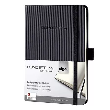 Jegyzetfüzet, exkluzív, A4, sima, 97 lap, keményfedeles, SIGEL "Conceptum", fekete