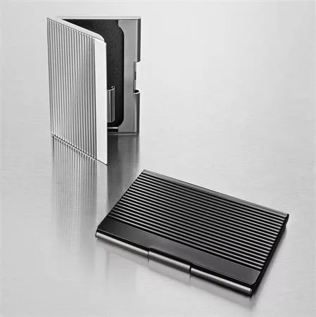 krómból készült fém tárca, ezüst színű, 20 db max. 91 x 56 mm méretű kártya tárolására