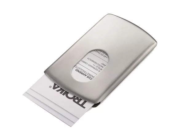 Névjegykártya tartó tárca, fém, 12 db-os, TROIKA "Slide"
