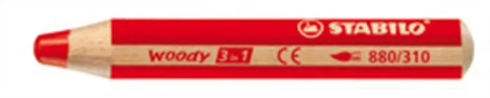 Színes ceruza, kerek, vastag, STABILO "Woody 3 in 1", piros